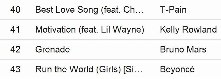 As you know, Kelly Rowland dropped her hit single, “Motivation” featuring Lil Wayne last month, and less than two weeks ago, Beyonce dropped her highly anticipated single, “Girls (Who Run the World)” over a week ago. The two, who have been good friends for over a decade basically, grew up together in Destiny’s Child and since their solo careers have supported each others music. Beyonce has always been the lead singer and has had more mainstream success with album deals, endorsements, visibility, etc. Kelly, still successful in her own lane–but not so much. Anywho, to our surprise and at least for the moment, Kelly’s single has out-shined Beyonce’s. According to iTunes top 100, “Motivation” is No. 41, while Beyonce’s “Girls” is sitting at No. 43 after only a week of release.