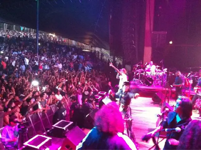 Folks waited for an entire hour for Lauryn Hill, the show’s headliner, to show up. At one point, they brought a DJ out to entertain the crowd and a few minutes ago, they started breaking down the equipment for her set. Folks are booing @ this point. Hopefully, they’re just putting together a new set for Ms. Hill–doesn’t sound like it though. An announcer just came out and said that Lauryn Hill was “sick and unable to make it.” Folks are saying that her band was actually in attendance, but she wasn’t.