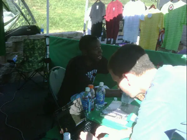 KRS-One literally hit the stage, rhyming he is “hip-hop, not rap”…DJ Premiere did a mix in honor of the late Guru, but his set was way too short. He only played 5 songs. 9th Wonder, pictured below, was spotted signing autographs to fans.