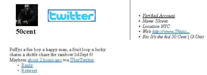 and I quote, “Puffys a fun boy a happy man, a fruit loop a lucky charm a skittle chase the rainbow lolSept 6! Mayhem” about 2 hours ago via ÜberTwitter”