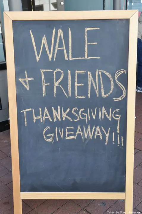 On Friday morning, Wale, and The Board Administration gave away Thanksgiving dinners, complete with turkeys and sides, to DC residents at Bar 7. Check the photos.