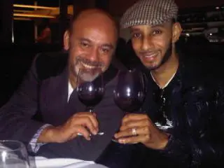 Swizz Beatz w/ Christian Louboutin, Mr. Red Bottom himself, on the set of his (Swizz) Aston Martin video.