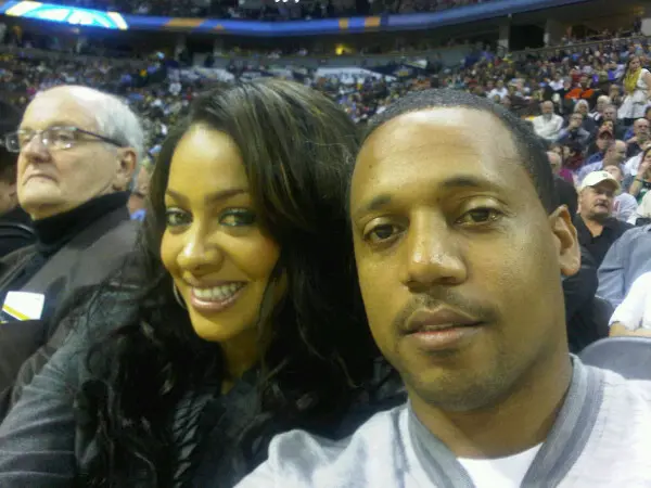 Lala court-side Saturday evening at the Nuggets game.