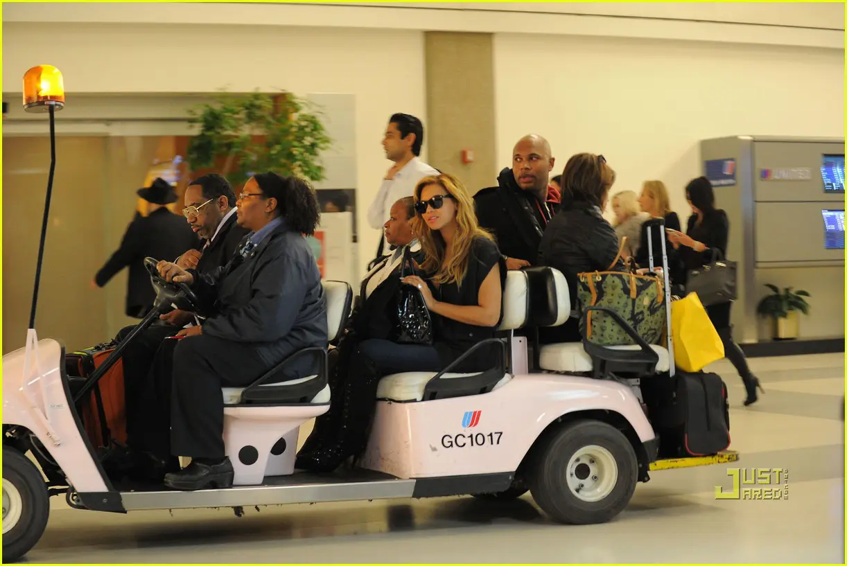 Beyonce was spotted being whisked away VIP style (in one of those car thingy’s that you catch when you’re running late for a flight) at LAX’s airport on Tuesday. Earler in the week, Bey was in NY hosting Lorraine Schwartz’s new jewellery collection, as well as screening her “I Am World Tour,” that airs Thanksgiving evening.