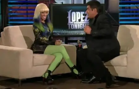 Monday evening, Nicki Minaj stopped by Lopez Tonight and discussed the success of Pink Friday, her alter egos (Nicki, Roman, Martha, Rosa–her newest ego), Regis/Rihanna’s obsession w. her ass, signing boobs and a booty protector (which George presents Nicki with).