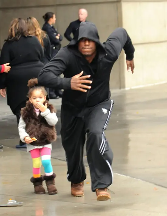 Yesterday, actor/singer Tyrese (or the black Dr. Phil is what I refer to him w/ all his damn inspirational messages) went ape sh*t on the paparazzi for taking photos of his daughter. He tweeted, “Today the papz refused to let me and my daughter be in peace after I asked nicely several times .. So I ran them away..Here is a pic moments before the chase… Stay away from my child when i’m out she doesn’t like her pics taken….”