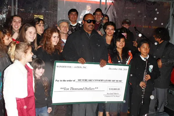 Over the weekend, the legendary Stevie Wonder, presented a $10,000 check on behalf of the Wonder Foundation to Silverlake Conservatory at Nokia Plaza.