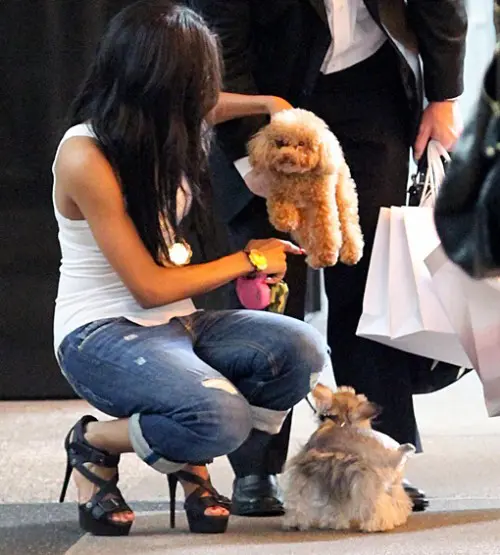 Ciara was spotted in Miami, shopping in Bal Harbour with her two adorable (female) dogs (or @ least we hear they’re female dogs…we also like to use the word b*tch on Wednesday’s). Check the flix!