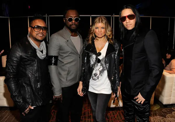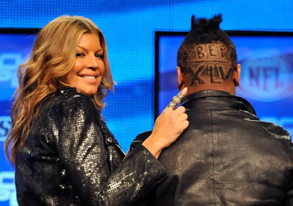Black Eyed Peas members, Taboo, Fergie, will.i.am and apl.de.ap, participated in the Bridgestone Super Bowl XLV Halftime Show press conference. Member, apl.de.ap, rocked a Superbowl inspired haircut. The group is scheduled to perform at the game. will.i.am said of their performance: “We want everybody to have a good time and just dance, party.” R&B star Usher and former Guns ‘N Roses guitarist Slash are also scheduled to perform.