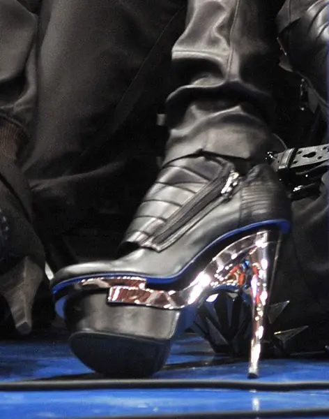 More important than last night’s New York Knicks vs Utah Jazz game, are the shoes that your girl Ciara rocked. If you guys know what they are, please hit me up. Please and thank you! Thanks to Fashoinista Barb, we’ve learned that Ciara’s shoe is from the Versace Womens Fall/Winter 2010-11 and retails at $1722.74. Thanks for all of the responses! Clearly y’all have a mean shoe eye!