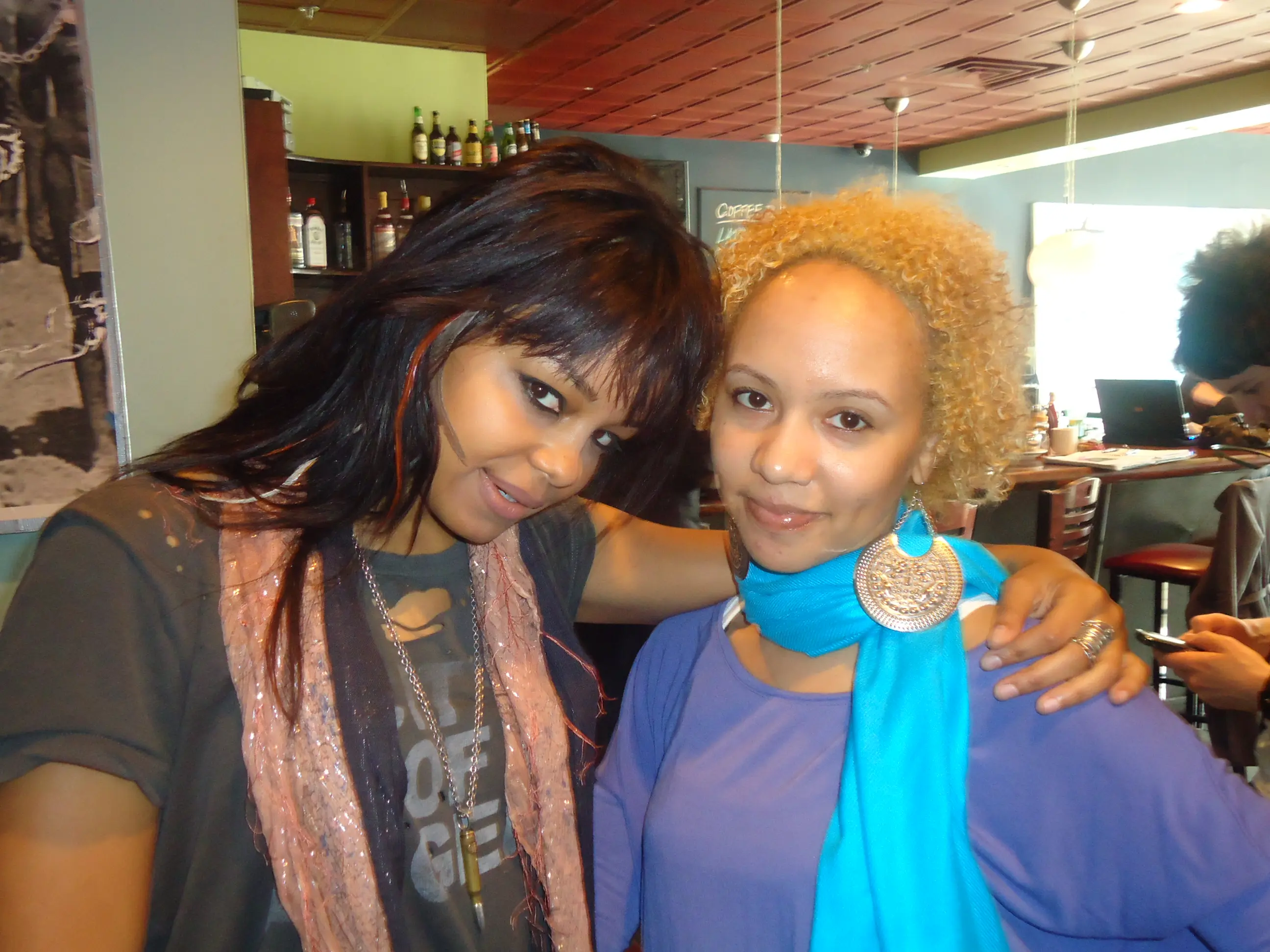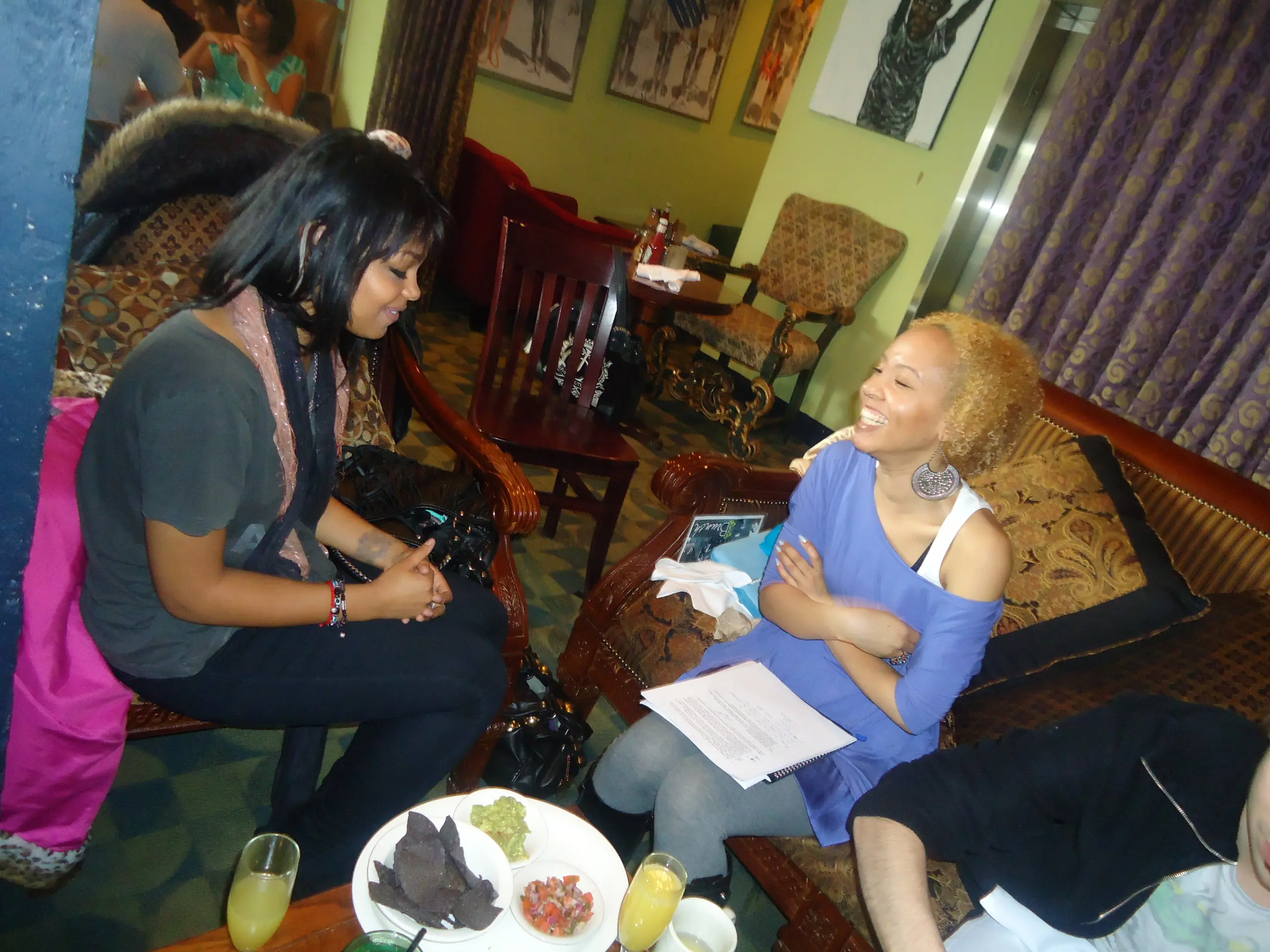 Totally off topic but a perfect way to end the interview (and since we were sipping on Mimosas) I did try to get into her love life but no luck there ;-) I asked her straight up, “Fefe, what’s up with your love life?” Especially after the explanation of her single, “Can’t Breathe.” In between giggles she shared, “I’m on the road, so it’s really hard.” After a few photos, some suggestions on where to find skinny jeans downtown, we complimented each other’s hair (she had a few feathers–literally–in her hair) hugged and parted ways. For all things Fefe, visit her web site, fefedobson.com.