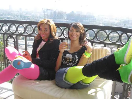 MTV’s Run’s House stars Angela and Vanessa Simmons were spotted getting glamed-up behind the scenes of the new Pastry Shoes ad shoot for the Neon Sires collection titled “I’m a Pastry Girl.” Cute!