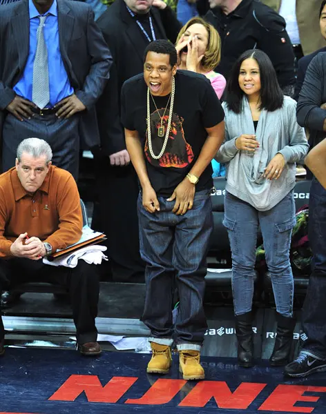 Jigga was spotted at the Knicks vs. Nets game, minus a haircut (he doesn’t cut his hair while recording), with radio personality Angela Yee.