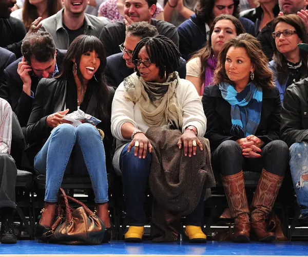 Tuesday (April 12) evening, folks hit up the Knicks vs. Chicago game @ Madison Square Garden. Kelly Rowland sat next to Vanessa Williams and Whoopi Goldberg. Floyd Mayweather was also ‘spiked out’, along with LaLa, Spike Lee and Swizz Beatz. No photo’ed, but in the building were Michael J. Fox, Hugh Jackman and John Turturro.