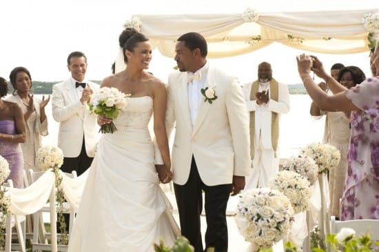 According to Box Office Mojo and number of other sources, ‘Jumping the Broom’ did some very impressive numbers this weekend. The film, which was released on May 6, had a production budget of $6.6 million and over the weekend is estimated to have rang in $13,700,000. Directed by Salim Akil, and produced by Tracey Edmonds, Elizabeth Hunter, T.D. Jakes, Glendon Palmer and Curtis Wallace, the film is a romantic comedy about two families who live on opposite sides of the social circle and have to get together for a marriage. Starring Laz Alonso, Paula Patton, Tasha Smith, Loretta Devine and Megan Good, the film came in at number 3, behind “Thor”($66 million this weekend) and “Fast Five” ($32 million).
