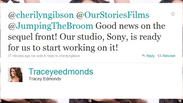 Great news for the folks who fell in love over the weekend with the romantic comedy, ‘Jumping the Broom’. Tracey Edmonds, one of the producers of the film, confirmed that a sequel may be well under way.