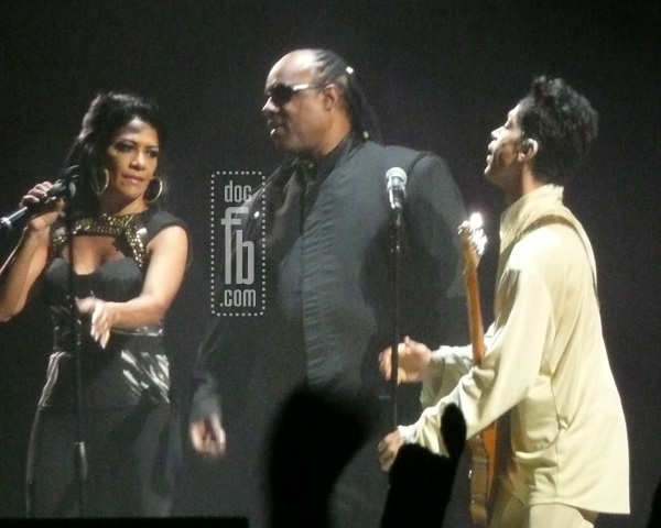 Sheila E, Stevie Wonder and Prince on ONE stage! On Friday night,Stevie Wonder joined Prince on stage at his concert in Los Angeles. Sheila E joined Wonder and Prince and performed “Superstition.” Source