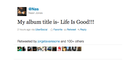 Nasir Jones announced the title of his new album on Twitter, “Life is Good.” This will be Nas’ 10th studio album.
