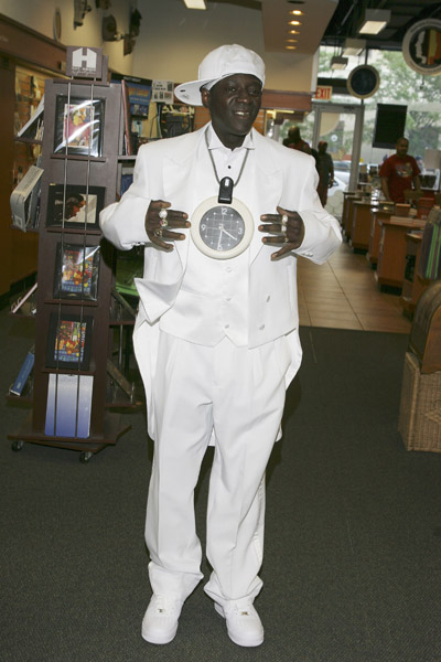 Whatever, I don’t have anything mean to say. I’m not gonna play ‘Captain Obvious’ over here and suggest that maybe that wasn’t the correct outfit selection. Here, Flavor Flav promotes the new book “Flavor Flav: The Icon the Memoir” at Hue-Man Bookstore & Cafe. Be nice.