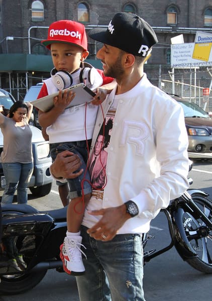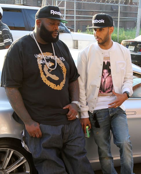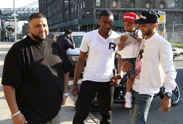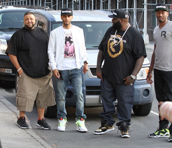 A day after HOT 97’s Summer Jam, Rick Ross, Swizz Beatz (and his bambino), DJ Khaled, NBA’er John Wall and Busta Rhymes were spotted out in Brooklyn shooting the video for “Reebok Back.” Please note that Swizz Beatz’s son is rocking a Reebok hat (as are most of them), dope head phones and what appears to be an iPad. Digital, eh?