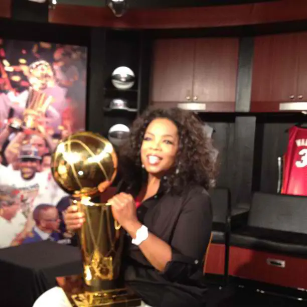 Oprah Winfrey poses before interviewing Miam’s Heats, “The Big Three”, for her show.