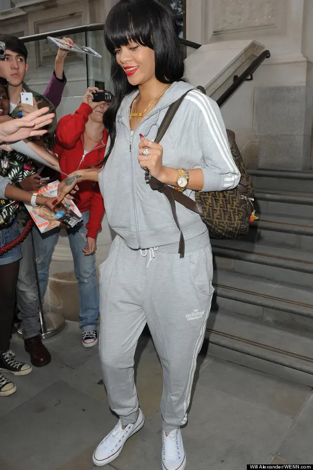 Rihanna was spotted out looking extra-comfy, as she left her London hotel.