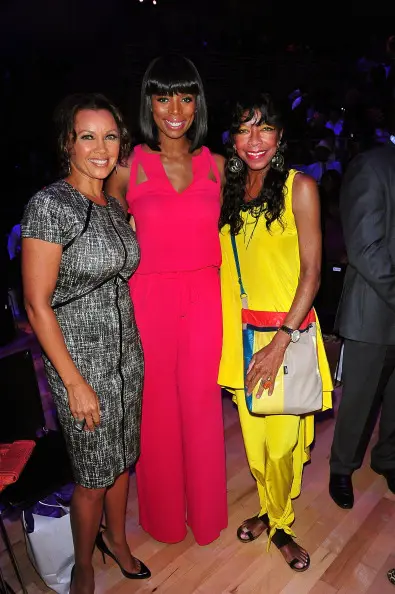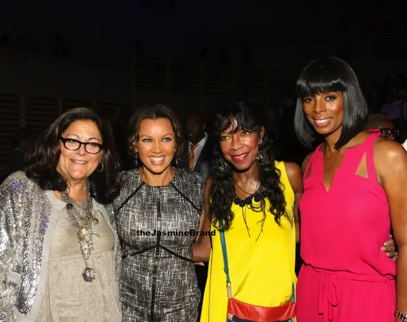 Actress Tasha Smith (wearing a BCBG jumpsuit) attended the Harlem’s Fashion Row 5th Anniversary. Here, the “For Better or Worse” actress poses with Vanessa Williams, Natalie Cole and Fern Mallis.