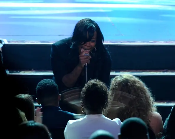 The BMI Urban Music Awards were held Friday night in Beverly Hills, and although guest of honor and pop icon Mariah Carey was running a little behind, that didn’t stop the show nor did it interfere with the all star tributes from fellow musicians to Mama Mariah. Musicians Fantasia Barrino and Eric Benet serenaded Mariah with their renditions of her songs ‘One Sweet Day’ and ‘Hero’, respectively. In true Fanny fashion, she ended up getting off of the stage to get close to Mariah to close out the song, which ended with an embrace between the two. At the end of the night, Mariah was awarded with the Icon Award for outstanding songwriting which produced 18 number one singles and more than 200 million albums sold. BMI chiefDel Bryant called her “an unparralled musical superstar” and “the greatest singer in history.” Hubby Nick Cannon was of course there to cheer her on in accepting this great honor. Work, Mariah!