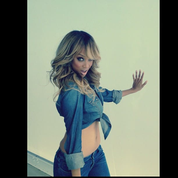 Tyra Banks makes muffin tops (her words, not ours) sexy (even though we can't seem to find exactly where the muffin top is).