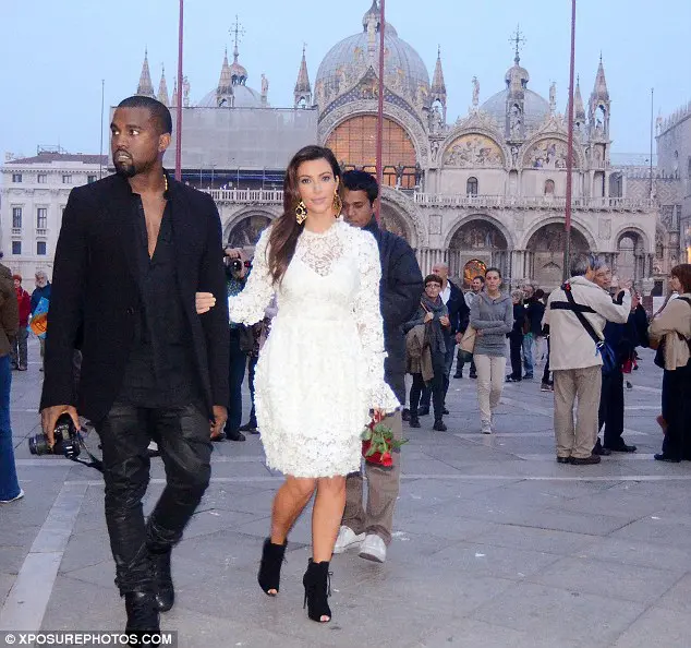 On Sunday, Kim Kardashian celebrated 32 years of life, along side her boyfriend, Kanye West. The two, who have been vacaying in Venice, were spotted holding hands on a birthday. While many of us speculated that Ye would propose on Kim’s b-day, we were sadly (or happily) mistaken. Although, Kim did feed buzz by wearing an all-white lace dress. Check the pix.