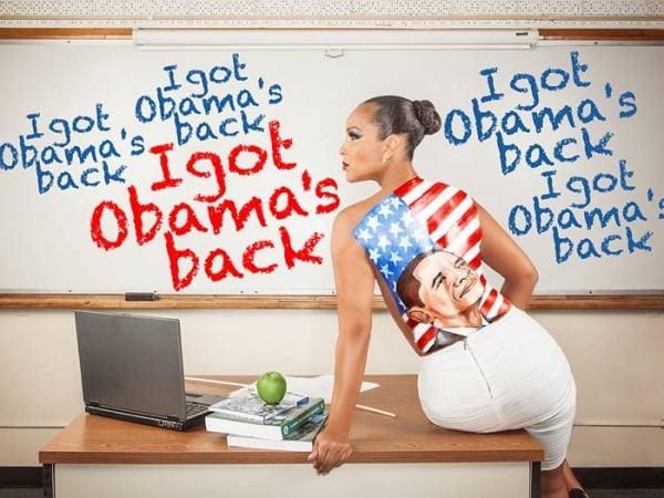 With the election countdown around the corner, folk are becoming more and more vocal about who they’re endorsing as the next president of the united states. A-listers have lent their celebrity, tweeting, touring and using fashion to speak to their political affiliation. Case in point, actress Lisa Raye did an artistic shoot, endorsing the re-election of President Obama. Rocking a white skirt, an image of Obama and the American flag is painted on Lisa Raye’s back, as she’s propped up on a desk, imitating a school teacher. She shared the photo above and wrote: