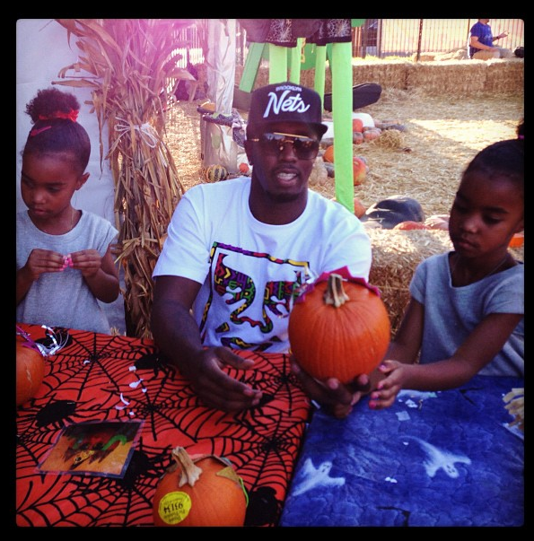 Diddy and his beautiful twins, D’Lilah and Jessie, celebrate Halloween in a pumpkin patch. Apparently daddy is having more fun than the kids.