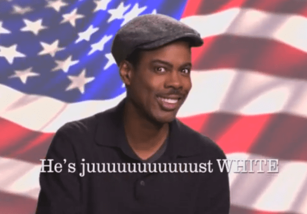 In no particular order, Rock sorta-kinda jokes why Obama is sorta-kinda white (his nick name Barry, being raised by white grandparents, his love for golf, etc.) Check it out.