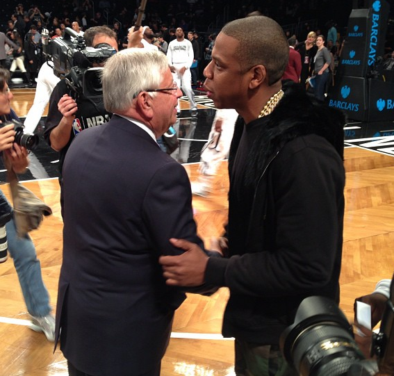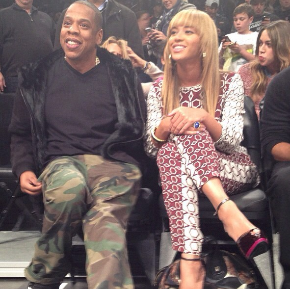 Beyonce and Jay-Z were all smiles, as the attending the first home game between the new Brooklyn Nets vs. Toronto Raptors game at the brand, spankin’ new Barclay Center. The couple sat ‘Spiked Out’ next to Jay’s BFF Ty and music executive Michael Kaiser.