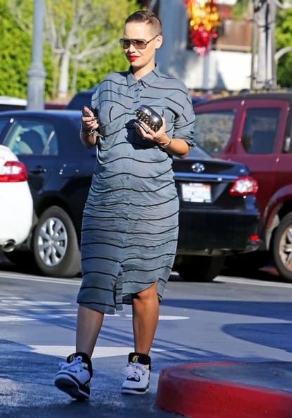A stylishly dressed Amber Rose was spotted in sneakers and a maternity dress, running errands in LA.