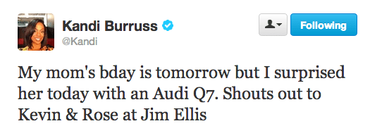 and Kandi must’ve gotten a deep discount on this audi for her sponsored tweet.