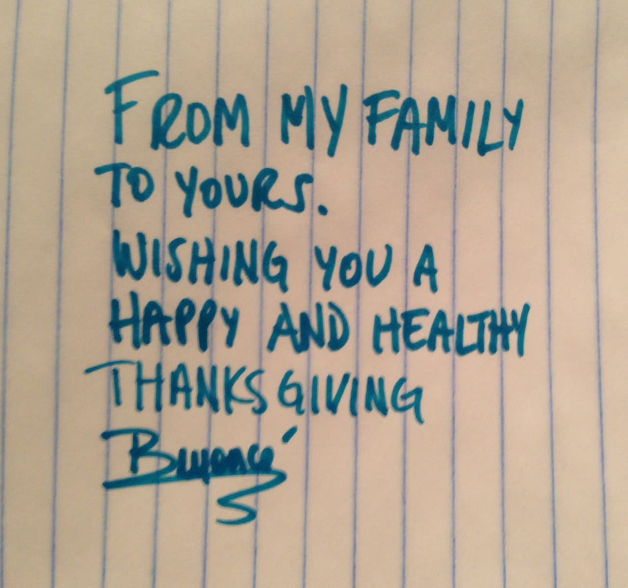 It’s Thanksgiving and Beyonce has penned a note, with holiday wishes. Donning royal blue outfits, Beyonce also shared a vacation photo of her and Blue Ivy (of course, we don’t get to see her face!) having a special moment. Cute!