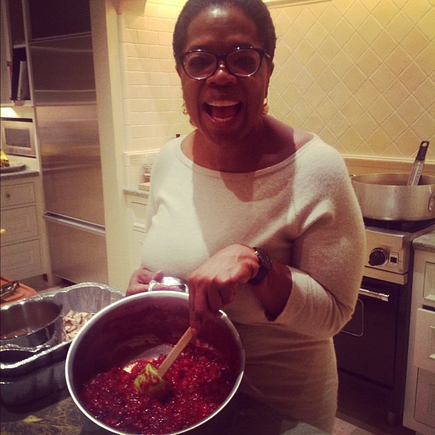 Cranberry sauce, sweet potatoes (with freshly picked Rosemary) and some other fancy food was on Oprah Winfrey’s Thanksgiving menu. The media mogul snapped a few photos of her prepping for her big feast.