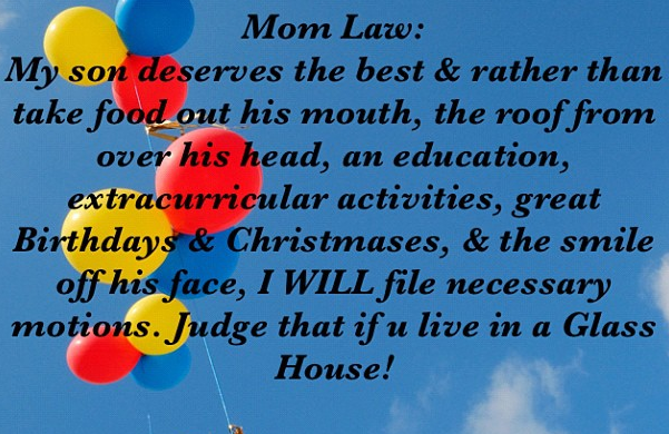 Just like you said. Two sides to every story. Her mom law sounds find and dandy, but one thing wrong with that. How much of this is for him and how much of this is you? He is only five years old. What are you feeding him ? Where are you trying to live? What kind of brithday party are you trying to give Him? How much can you buy a five year old for christmas? Kids are expensive, but lets be reasonalable.