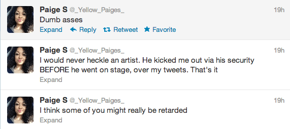 Let’s keep this short and sweet. Yesterday, we shared an alleged story involving Joe Budden, a chick name Paige and a show in Oakland. Long story short, Joey decides to check his twitter mentions, notices that baby boo (Paige) is calling his show wack (actually, she said it was ‘tired’ and tweeted a pic of Nodoz), finds out who she is and has her removed from his show. According to Paige, she was removed for the show NOT for hackling Joey, but only for her tweets. She briefly clarified on twitter: