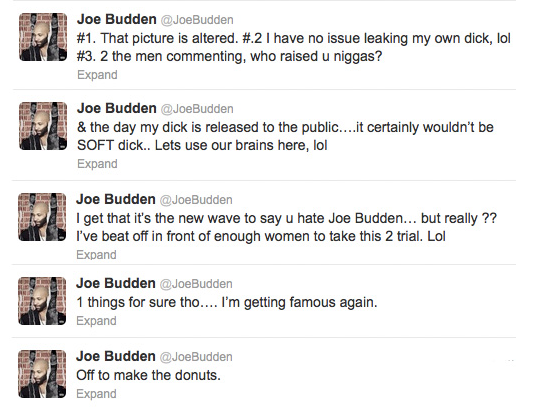 Photoshop tricks got the best of rapper-turned-reality star, Joe Budden. Earlier today, an alleged photo of the 32-year-old’s ‘package’ was leaked and posted to Sandra Rose. The thing is, Joe says not only is the penis in question not his, but he says he has no issues showing off what the good lord has blessed him with. Excuse his language and peep the tweets: