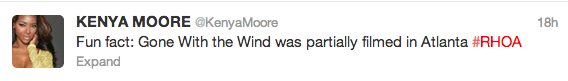 So we weren’t surprised when we learned that Real Housewife of Atlanta’s Kenya Moore launched her very own line. With a variety of long and short-sleeve T’s, her shirts carry some of her popular phrases like–Hold Onto Your Weaves, 40 & Fabulous and ‘Gone With the Wind Fabulous’. And for less than $30, you too can cop one. Click here for more #GWTW tee’s. P.S. Bet you didn’t know this fun fact: