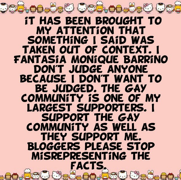 Fantasia Apologizes to Gay Community: I Don’t Judge Anyone