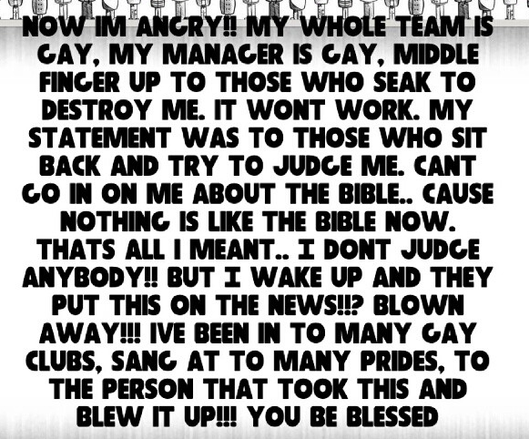 Now im VERY UPSET!!!! BUT ITS COOL!! IM NOT THE SAME GIRL I USE TO BE. IVE BEEN HURT ENOUGH. IM A Grown Women thats been Hurt Enough now. FOOLISHNESS!!!! I APOLOGIZE TO ALL MY LOVES, ALLLL MY GAYS, QUEENS AND FAB FRIENDS WHO’S SEEING THIS NONSENSE RIGHT NOW. HAVE YOU FORGOTTEN THAT THEY HAVE TRASHED ME SINCE THE DAY I STEPPED ON THE IDOL STAGE? HAVEN’T YOU ALSO NOTICED THAT I STILL HAVE NOT STOPPED. TO MY GAY MANAGER( IM OVER SEEING YOU WORK SO HARD) THOSE WHO NO ME NO I DONT JUDGE ANY 1 AND THAT I JUST WANT THEM TO STOP TRYING TO JUDGE ME. TO ALL THE BLOGGERS AND NEWS STATIONS GOD BLESS YOU TOO!! CAUSE YOU NEVER SUPPORT MY GOOD YOU JUST REPORT THE BAD. I DONT CARE WHO GETS MARRIED OR WHO YOU LAY WITH, HANG WITH OR WANT TO BE LIKE. ITS YOUR LIFE LIVE IT. NOW GO AHEAD TAKE THIS AND TURN IT AROUND BUT IM STILL HERE CAUSE GOD PUT ME HERE. CHECK MY SPELLING AND MY GRAMMER* whatever you need to do* This is sad and im done with all this Media stuff .