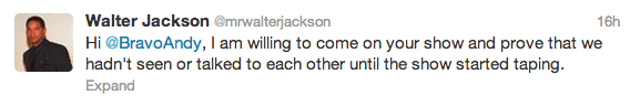 The plot seems to be heating up, offline, between Real Housewives of Atlanta reality star, Kenya Moore and her alleged ex-boyfriend, Walter Jackson. If you watched this entire season and kept up with the rumor mill, you know that last December, Walter did a radio interview alleging that Kenya had asked him to ‘play her boyfriend on TV’, so that she could be on the popular BRAVO show. Kenya admittedly denies this theory. Sunday evening, while on Andy Cohen’s ‘Watch What Happens Live!’ show, Kenya reiterated that their relationship was not ‘fake’ and her feelings for him were authentic. After the episode aired, Walter tweeted Andy, the show’s producer: