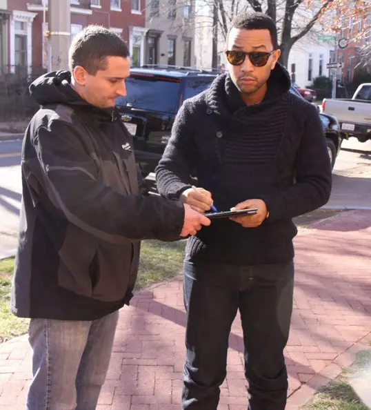 Everybody and their play cousin is in the nation’s capital for Inauguration 2013. Before hitting some of the biggest balls, we caught a few celebs hitting the city, during the daylight hours. John Legend was spotted @ Shiloh Baptist Church (he actually performed–footage after the break).