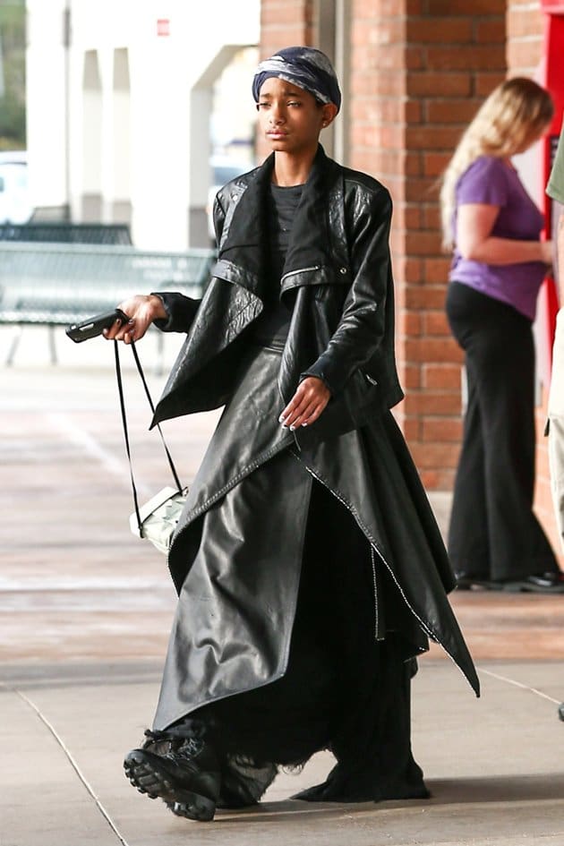 And in other news, Willow Smith (who could care less what fashion critics say about her sense of style), was spotted sporting a biker-gothic-chic look for photogs. #BeMad