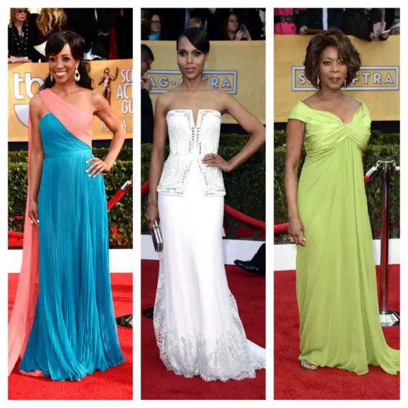 Ladies ruled fashion, at the 2013 Screen Actors Guild Awards. Hollywood’s hottest stars from TV and film poured into LA’s Shrine Center, showing up on the red carpet in gorgeous gowns, elegant pulled-up hair and dapper tuxes. We caught folks like Kerry Washington, Rocsi Diaz, Kelly Osbourne, Chris Tucker, Taye Diggs and some other fancy folk. Peep some of our favorite looks.