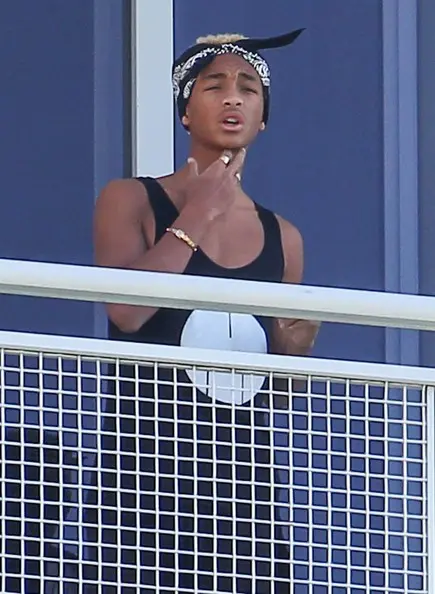 Actor/rapper Jaden Smith was spotted rehearsing rap lines (okay, we made that part up) outside of on his Miami balcony.