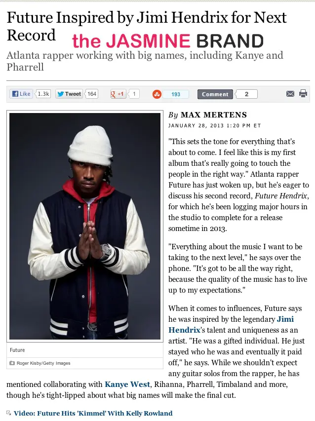 Besides being romantically linked to ATL singer Ciara (and unpleasantly linked to an unfortunate child support case), big things continue to pop for 27-year-old rapper Future (real name Nayvadius Cash) who recently talked to Rolling Stone about being influenced by Jimi Hendrix, working with producer Mike Will, and his future (no pun intended) . Peep the excepts below.